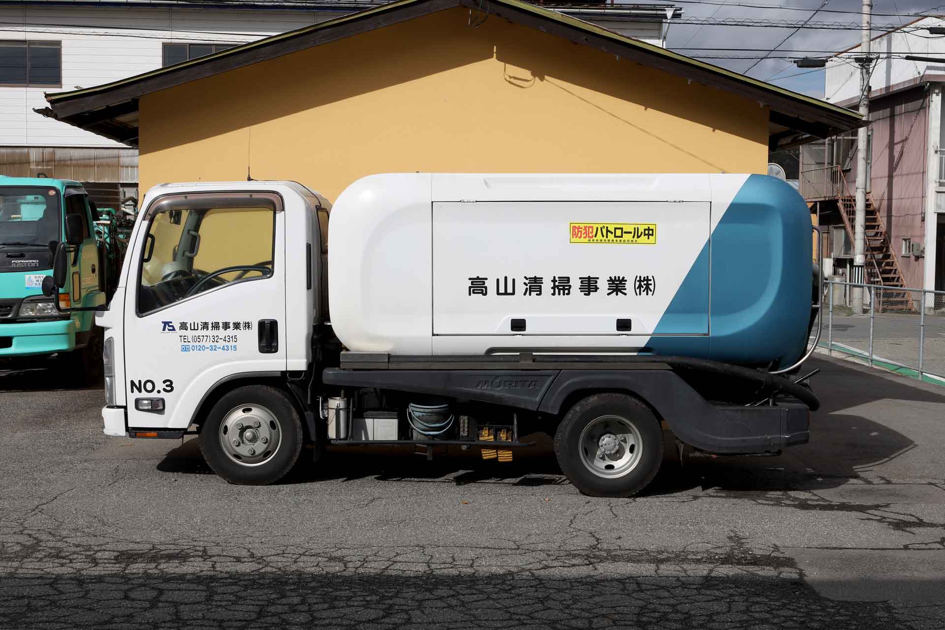 高山清掃事業では、臨機応変に柔軟な対応ができるよう、多種多様な車両を保有しております。